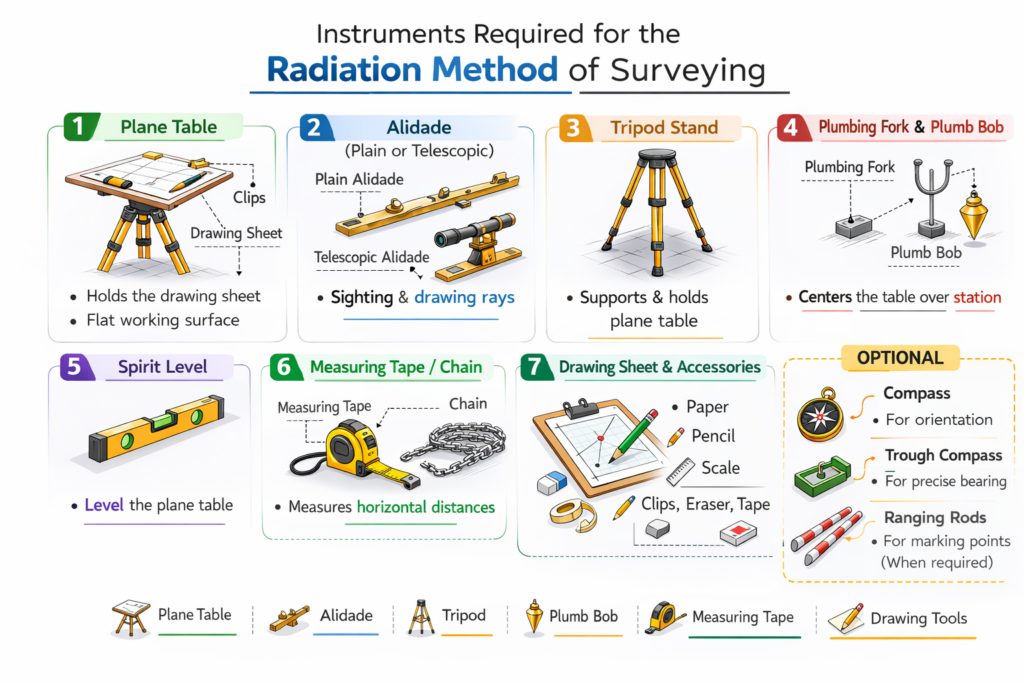 Instruments required for Radiation method of surveying